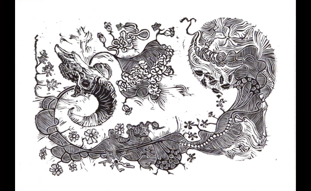 “Dangling Ram” by Kevin William Reed (woodcut print)