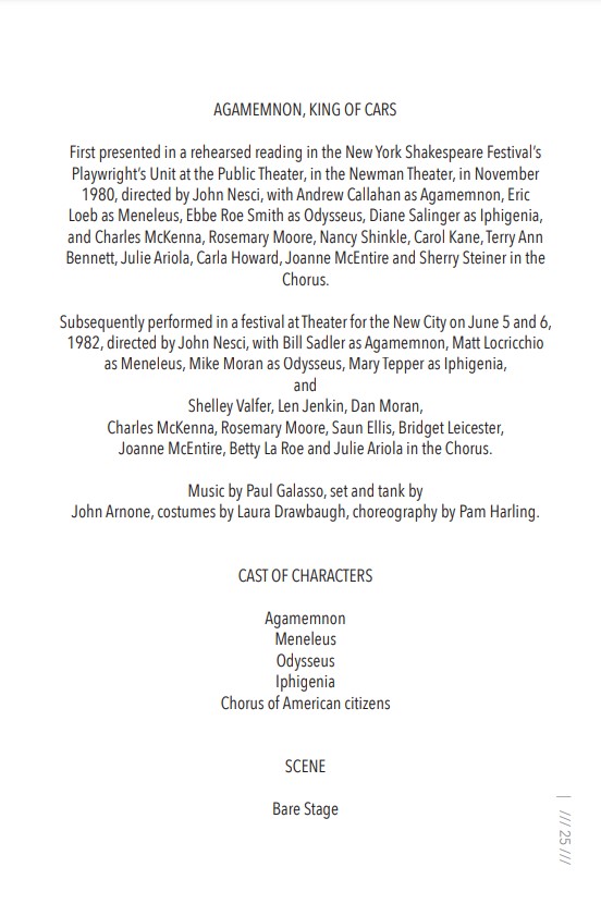 “At long last here’s Bill Considine’s considered, rollicking, breezy, deep, avant-post take on what Poetry is, what Theater is, and what happens when these arts tumble dance through history together only to land simultaneously on page and stage. Equal parts Sophocles and Ashbery, whose lineage from Electra right through to ‘The Heroes’ he invokes, Considine riffles the classics to fan a new breath of Pure Future. Perform these plays in your mind’s eye or take the dare and produce them on stage — they are transportative. IOW, as Agamemnon says in ‘Agamemnon, King of Cars,’ ‘Let’s prowl the great desert, / Whooping on speed, / In pick-up trucks or tanks. / Let’s all wear cowboy hats.'” — Bob Holman