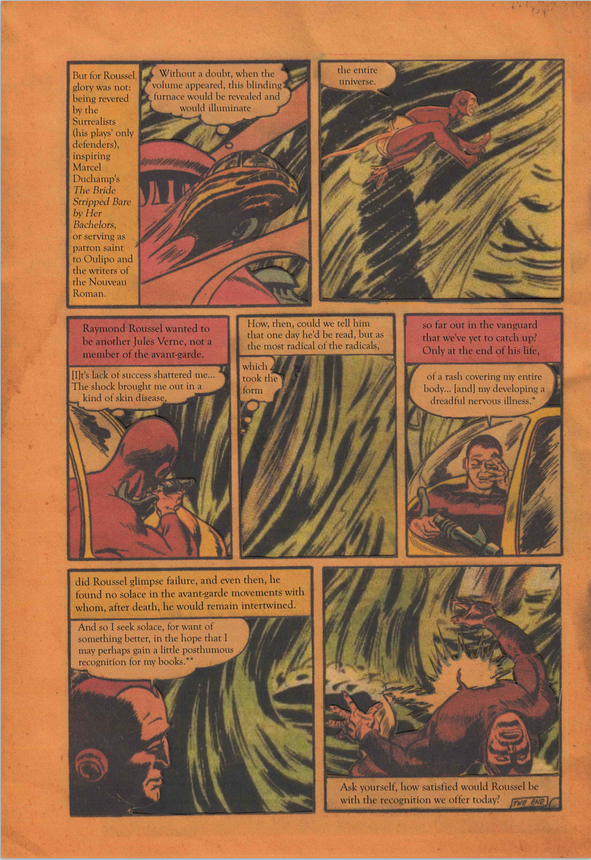 I’m so thrilled that for Day 3 Johnny Damm (whose book, Science of Things Familiar, is forthcoming from The OS in 2017) has applied his unique hybrid approach of combining his own analysis, primary source readings, poetics and vintage comics to this piece on Raymond Roussel, with whom many readers may indeed be unfamiliar (much to Roussel’s chagrin). And it’s only the beginning for this year’s incredible gathering…