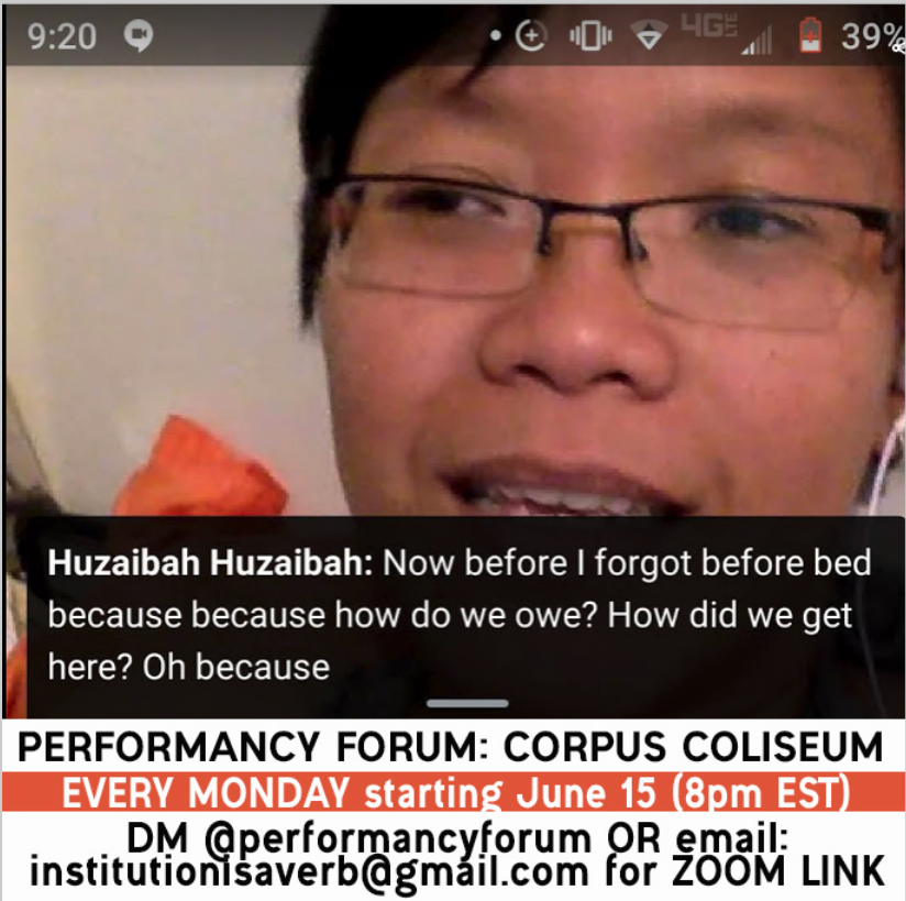 DM @performancyforum on IG or email institutionisaverb@gmail.com for ZOOM LINK