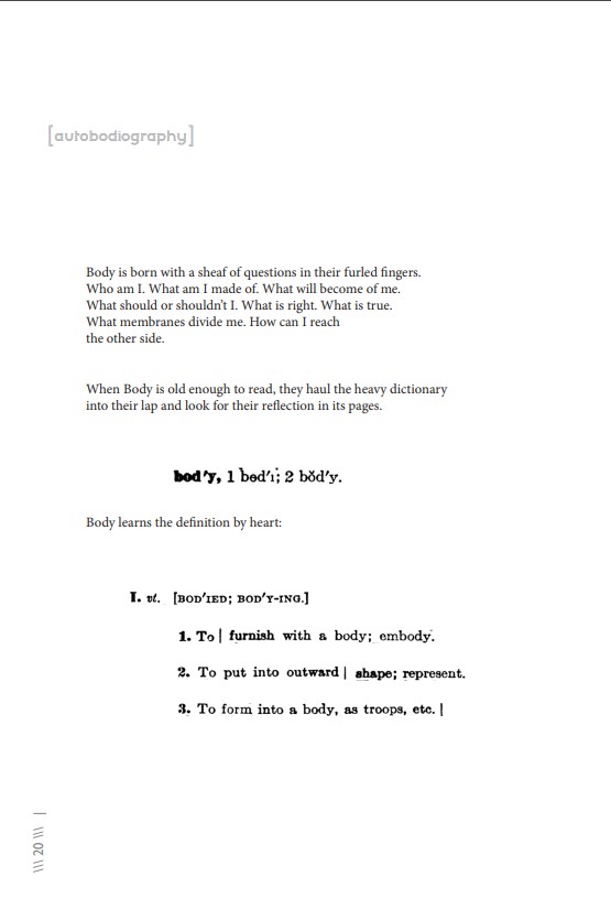 Lyric essays, Poetry, Visual Poetry, Hybrid, Erasure, Photography, Performance, Art, Chronic Illness, Disability, Queer, LGBT, LGBTQ, LGBTQIA, Place, Setting, Connection, Gender, Nature