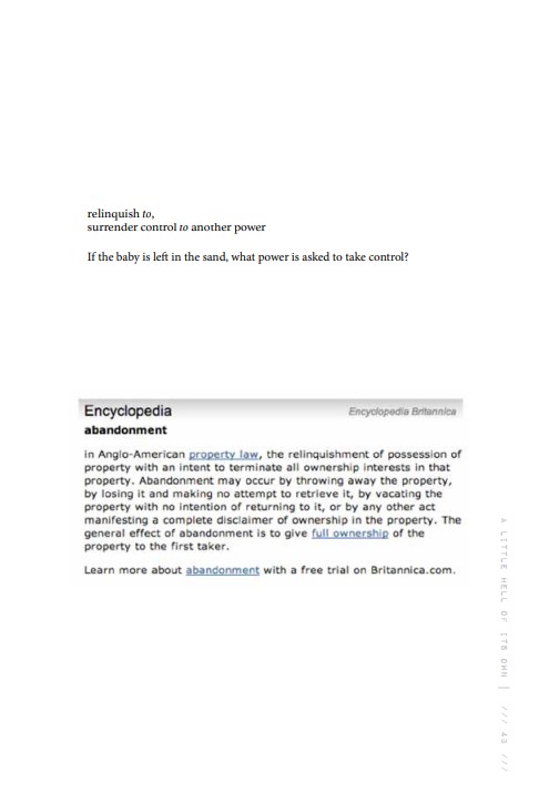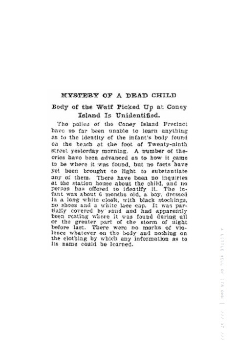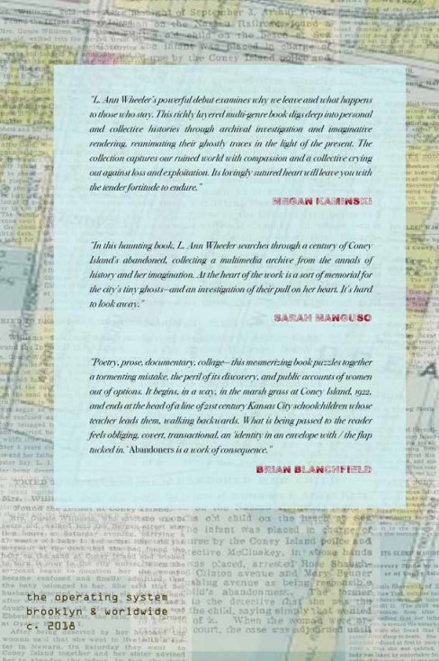 Abandoners is part non-fiction, part poetry, and part graphic novel and exists at the intersection of women’s lives in transition, and the relentless fantasy of Coney Island. It’s framed by the story of a woman who abandoned her baby in Coney Island Creek in 1922, and the re-telling and re-casting of her story in a way that lifts it out of the archives and makes her human.