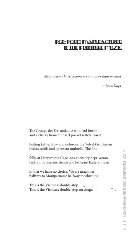 “The pitched quality of inventiveness in Mark Gurarie’s poems, is a worthy homage to the aleatoric musician John Cage and other musicians who inspire both the silences and contemplative notes of whimsy. The poems, like the music, however, are hitched to emotional states of being that are never distended or anemic, but curiously imaginative and responsibly resourceful to the core.” — Major Jackson