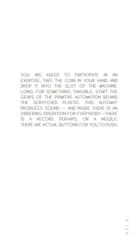 In his debut collection, Gurarie experiments with absurdity, dissonance, and a patchwork of influences to consider the language of society in decline. Across four distinct sections, he explores the cultural influence of various musical forms (including pop, punk, and atonal composition), the synthesis of nature and machine, and linguistic alienation. The latter is represented by an invading alien dubbed “Resistant is Futile” whose muddled grasp of English is cobbled from advertisements and “foam operas,” resulting in comically forlorn thoughts on, among other topics, breakfast (“these embryos are overcooked/ and missing the shells”) and missing pets (“oh Lost Kitty of 718 228-5613./ On the fence post, this time”). Extinction and evolution — of humans and other animals, language, technology, and cultural fads — are recurring themes. Sense can be abandoned in favor of captivating imagery (“freedom is a twenty-two // year old bear princess / with a wolf mask / where a t-shirt ought to be”) and clever turns of phrase: “to choke / this impenetrable frog / eyes. I stare back, I rib it // vicariously.” Repetitive phrases act as a chorus, enhancing the poems’ musicality and anchoring the reader to the text. With his jarring riffs, Gurarie eschews logic for a rewarding immersion in discord: “Everything / is Empire in the Empire, but the Machine / loves you all the same.”