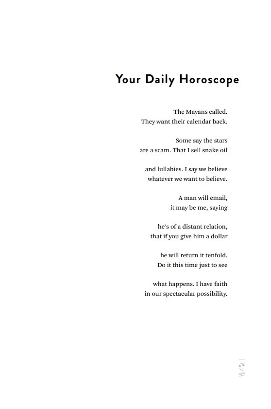 GOODBYE WOLF is a collection of poems alternating between the author’s subversion of the horoscope and its tropes and his epistles to chronic illness, dear wolf or lupus. The poems explore the everydayness of disease and the absurdity of asking for answers from the stars — and of course waiting for their replies. Someone once said the longer you wait for the bus, the sooner it’ll arrive.