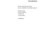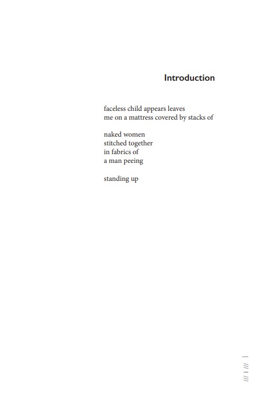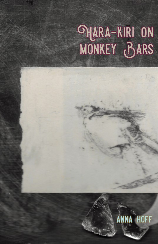 Hara-kiri on Monkey Bars is a work in four parts, exploring, among other things: silicone breasts, hairless limbs, and see-through underwear; the influence of the media on attraction, submissiveness, and gender; condoms bananas pills, exhausted Barbie dolls, biology, education, and menstruation; daisies, knights, sleepovers, clothes that do not suggest, childhood, innocence, and love; paper cuts grannie panties, age, motherhood, and suicide. In the first and second sections, the forms of the poems follow the chemical structure of the 16-androstenes in pheromones, while the fourth section follows the chemical structure of serotonin: (C 10 H 12 N 2 O). Lastly: the answer to the introduction is the conclusion.