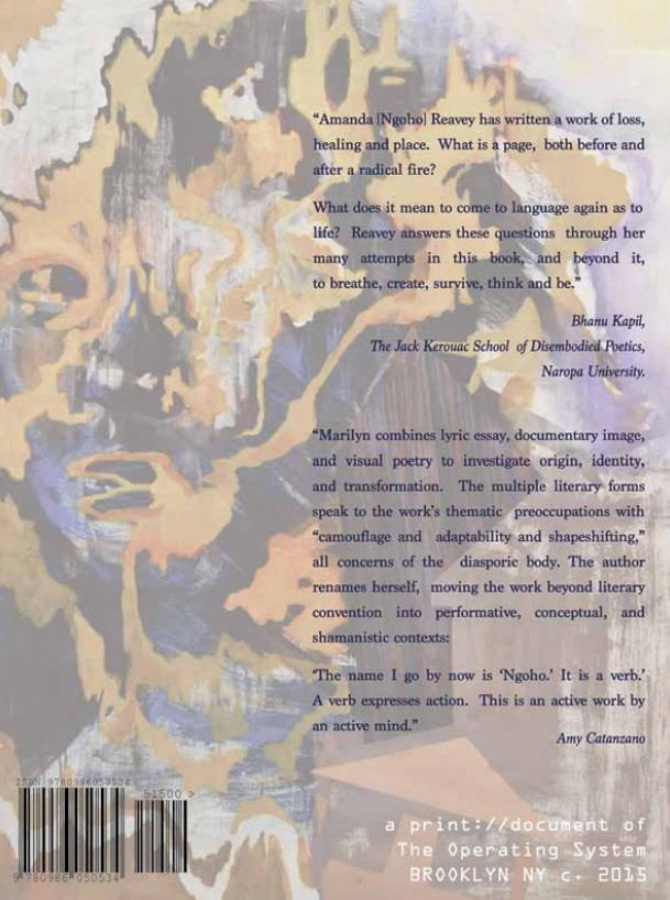 “Amanda [Ngoho] Reavey has written a work of loss, healing and place. What is a page, both before and after a radical fire? What does it mean to come to language again as to life? Reavey answers these questions through her many attempts in this book, and beyond it, to breathe, create, survive, think and be.” — Bhanu Kapil