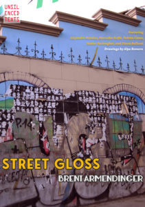 Brent Armendinger was born in Warsaw, NY, and studied at Bard College and the University of Michigan, where he received an Avery Hopwood Award in Poetry. In addition to Street Gloss, Brent is the author of The Ghost in Us Was Multiplying (Noemi Press, 2015), a finalist for the California Book Award in Poetry, and two chapbooks, Undetectable (New Michigan Press, 2009) and Archipelago (Noemi Press, 2009). His poems and translations have appeared in many journals, including Anomaly, Asymptote, Aufgabe, Bloom, Colorado Review, Denver Quarterly, Ghost Proposal, Hayden's Ferry Review, LIT, Puerto del Sol, Volt, and Web Conjunctions. He is a recipient of residencies from Blue Mountain Center and Headlands Center for the Arts. Brent teaches creative writing at Pitzer College and lives in Los Angeles.