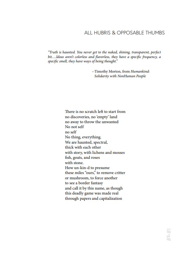 ELÆ [Lynne DeSilva-Johnson] is a cell cluster attempting to person — aka, a multimodal creative practitioner, curator, cultural scholar and educator. Their work employs text, installation, sound design, performance, digital tech and speculative theory in addressing the somatic, ontological intersections between persons, forms of language, and systems, as well as the study of resilient, open source strategies for ecological and social change. Features include Protagony at The Exponential Festival, How to Human: Resistance Protocols as part of Performing Knowledge at the Segal Center, the Speculative Resilience Radical Practice Library & Lab for the Anarchist Bookfair, Dixon Place’s HOT! Festival, and a field lab installation for Ars Electronica / STWST. Publications include Vestiges, Big Echo, Matters of Feminist Practice, The Transgender Narratives Anthology, Choice Words: Writers on Abortion, and many more. Solo text projects include Ground, Blood Altas, Overview Effect, Sweet and Low: Indefinite Singular, the collaborative Boddy Oddy Oddy, an ekphrastic project with painter Georgia Elrod, and The Precarity Bodyhacking Work-Book and Guide, with Cory Tamler and Storm Budwig. Hats: Visiting Assistant Professor at Pratt Institute, Founder/Creative Director of The Operating System / Liminal Lab, Communications Manager for More Art, and lead R&D for the Brooklyn node of the Mycelium Network Society. A door via IG: @thetroublewithbartleby.