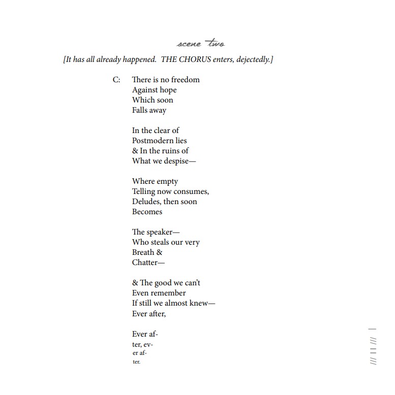 “In the tradition of the Theater of the Absurd, We, The Monstrous is a brilliant work of resistance that maps the paths that have brought us to the edge of the abyss. Mark DuCharme’s script for an ‘unrealizable film’ examines our fractured humanity, and offers us several possible futures. May we heed the oracle of art and choose wisely, for as this poem proves, everything matters.” — Brenda Coultas